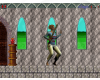 Arrow keys, move left and right. Pressing the DOWN arrow key will make you duck. You can climb ladders with the UP and DOWN arrow keys.