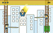 Anyway, the game is one of a kind, and is a pinball+pong+trampoline combination. Your aim is to keep climbing and climbing using 2 police at both sides to save the inflated Mr. Boo from falling.