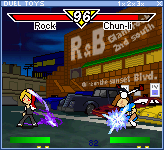 Diefox has added the newest version of Duel Toys, now it's a fan game of sorts. It's a fighting game that features characters from many of the old school 2D fighting games that us old farts grew up with. But anyway, I highly suggest you check this game out even though it's not finished.Comments from the Author:Well, its the story of super toys that can fight and are the new sensation around Green Grapes city.