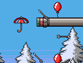 You move with the arrow keys guiding your umbrella to the ground. To slow down just hold the up arrow. There's some definite technique to beating the levels and you've just got to keep trying until you get the perfect rhythm.